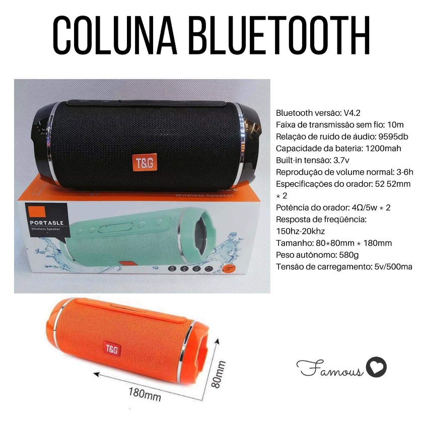 Coluna Bluetooth (Várias cores)